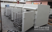 (1)烘干工作時間12小時,烘干溫度120℃可調(diào)。預(yù)計產(chǎn)能為600Kg/車。產(chǎn)品采用托盤平鋪方式放置。
